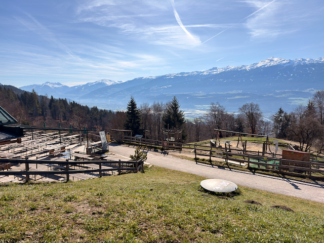 Arzleralm is a traditional mountain hut at the foot of Innsbruck’s Nordkette — easy to reach and popular with families. From Hungerburg (reachable by the Hungerburgbahn funicular or bus line J from the city center), you can take a broad gravel road that doubles as a mountain bike trail, or opt for a steeper forest trail that gets you there in under half an hour. Here’s the trick: head up when the restaurant is closed (always on Mondays; depending on the season, Tuesdays and Wednesdays too) and you’ll have the place almost to yourself. A vending machine keeps you supplied with drinks and snacks, and if you’re lucky, you might find a sun lounger on the hill next to the Alm. Check their website for opening hours (Öffnungszeiten): arzleralm.at