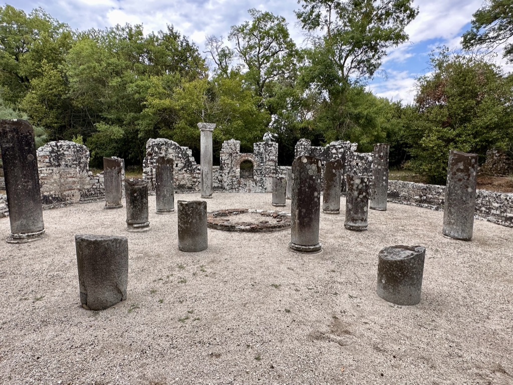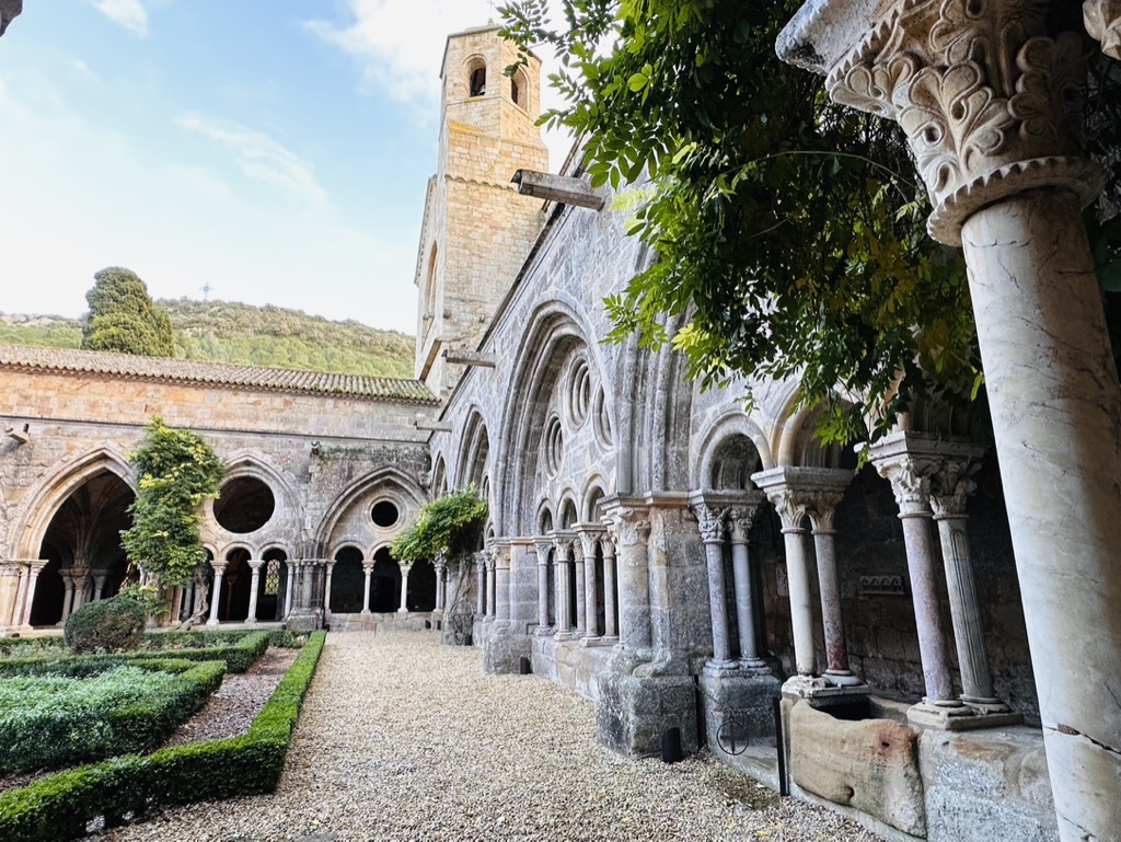 picnic in a peaceful Romanesque/Gothic architectural setting near Narbonne