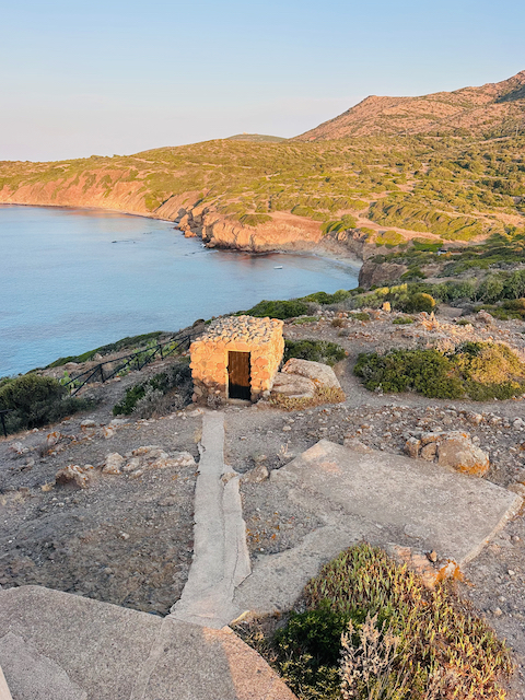 A 1757 watchtower on the wild southern tip of Sant’Antioco, a small island in the southwest of Sardinia. The tower, built to spot Barbary pirate raids, today watches over three quiet little bays — perfect for a picnic with cliffs, turquoise water and not a crowd in sight. Several benches let you sit and enjoy your picnic, and a sandy beach is a five-minute walk below — perfect for cooling off afterwards.